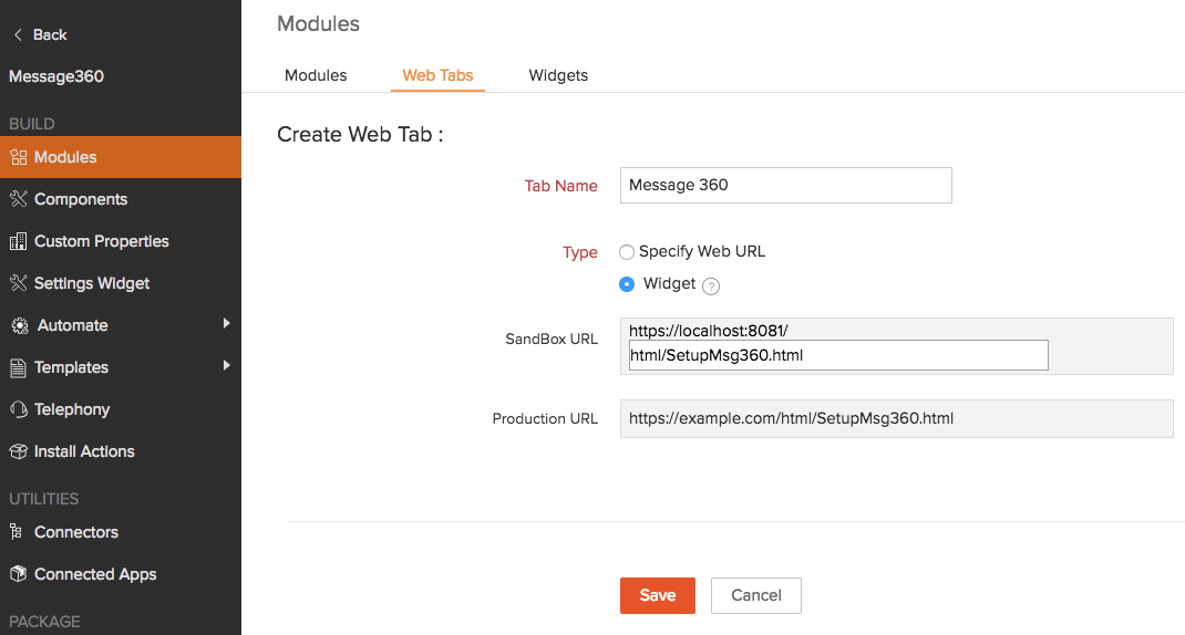 - If you need to create modules with UI elements that cannot be added using prebuilt or custom modules, or if you need to add features in your module that are not supported by prebuilt or custom modules, you can do so using web tabs.