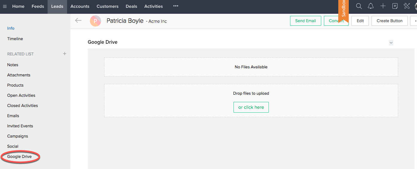 - For example, you can integrate Google Drive with your application and upload documents from your CRM application to your Google Drive account. You can view within a record, a related list of all the associated documents uploaded to your Google Drive account. The related list will be automatically synced to your Google Drive account.