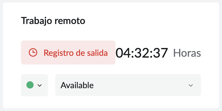 Con la ayuda de la sección Trabajo remoto en su perfil de usuario, puede registrar la entrada, la salida y administrar su estado de disponibilidad directamente desde su perfil.