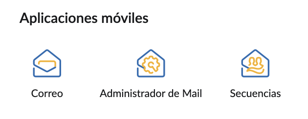 En la sección Perfil de usuario aparecen las aplicaciones de Zoho Mail disponibles para teléfonos celulares. Entre las aplicaciones se incluyen Mail, Mail Admin y Streams. Si hace clic en cada ícono, entrará a la página de la aplicación correspondiente.