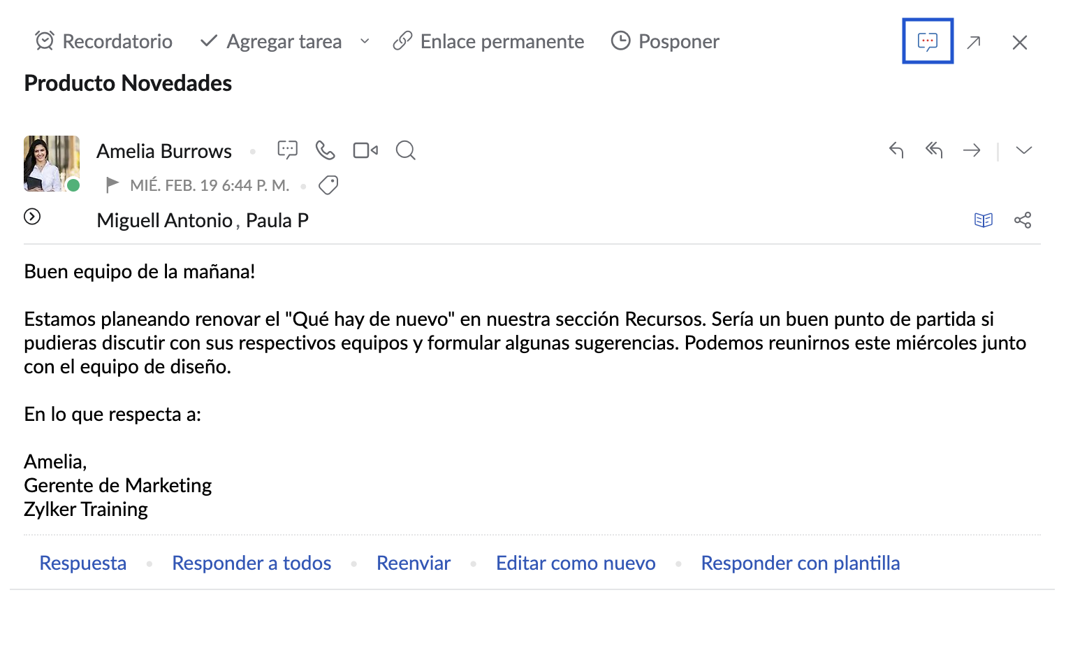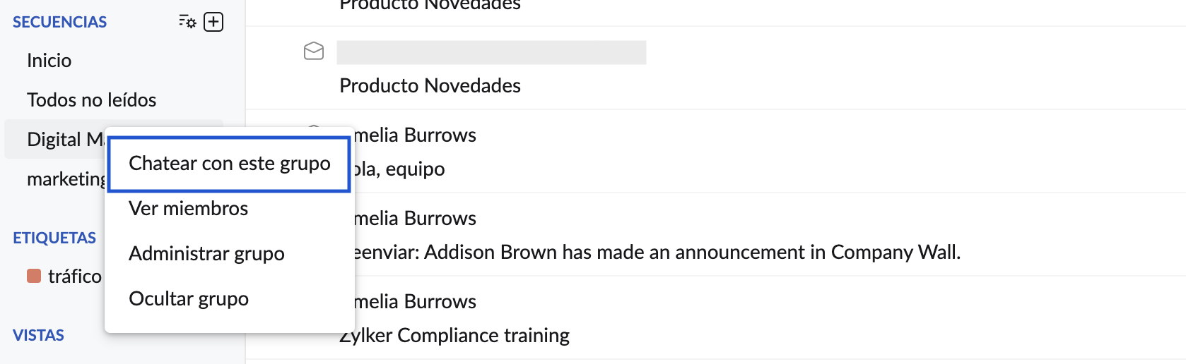 Integración de Zoho Cliq en Zoho Mail