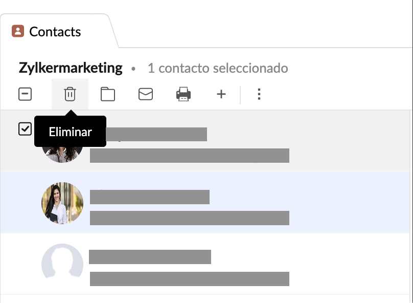 También puede eliminar un contacto de una categoría específica si selecciona la casilla de verificación del contacto y hace clic en la opción eliminar.
