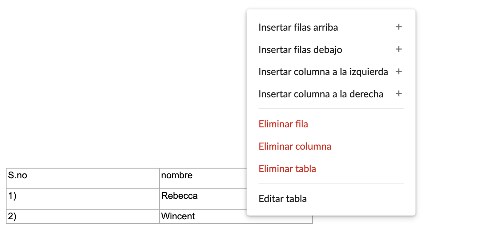 - Puede hacer clic con el botón derecho en la tabla para agregar o eliminar filas o columnas.