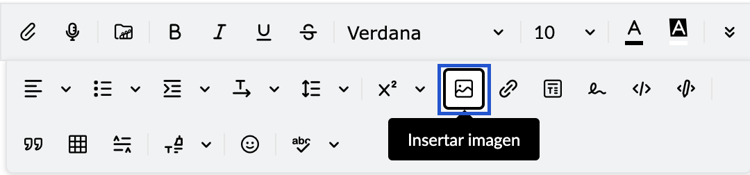 - En la barra de formato, haga clic en el ícono Insertar imagen.