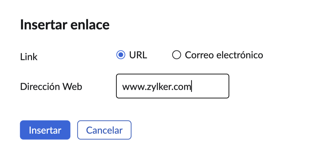 - Enlace: puede ingresar la dirección web correspondiente en el menú desplegable Insertar enlace para generar el hiperenlace de la imagen.