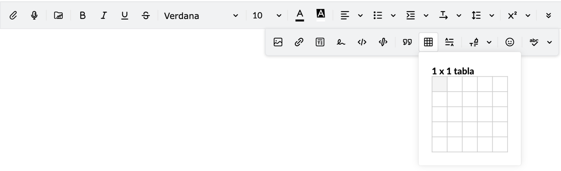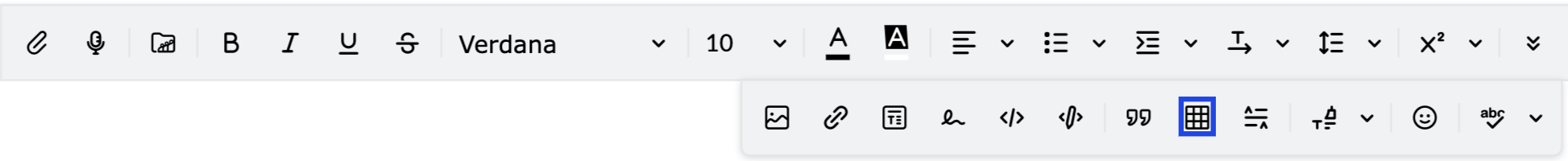 - Haga clic en el ícono Insertar tabla en la barra de formato para insertar una tabla.