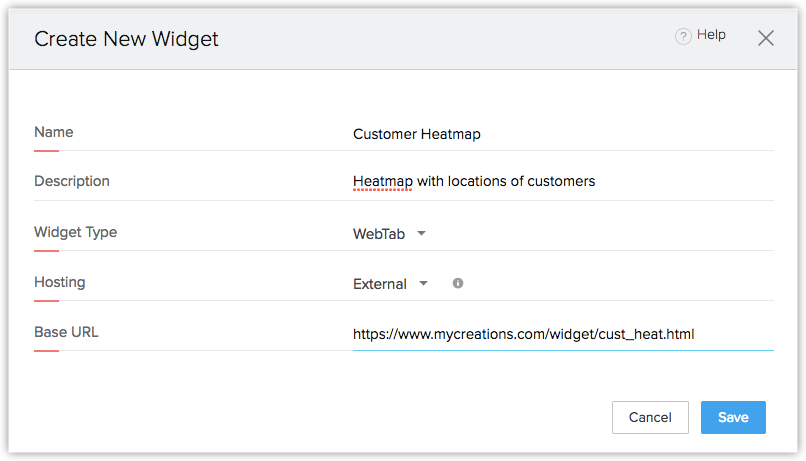 Pour le moment, Zoho CRM prend en charge 4 types de widgets. Il s'agit de ceux qui sont ajoutés aux boutons personnalisés, listes associées, onglets Web et tableaux de bord de la page d'accueil.