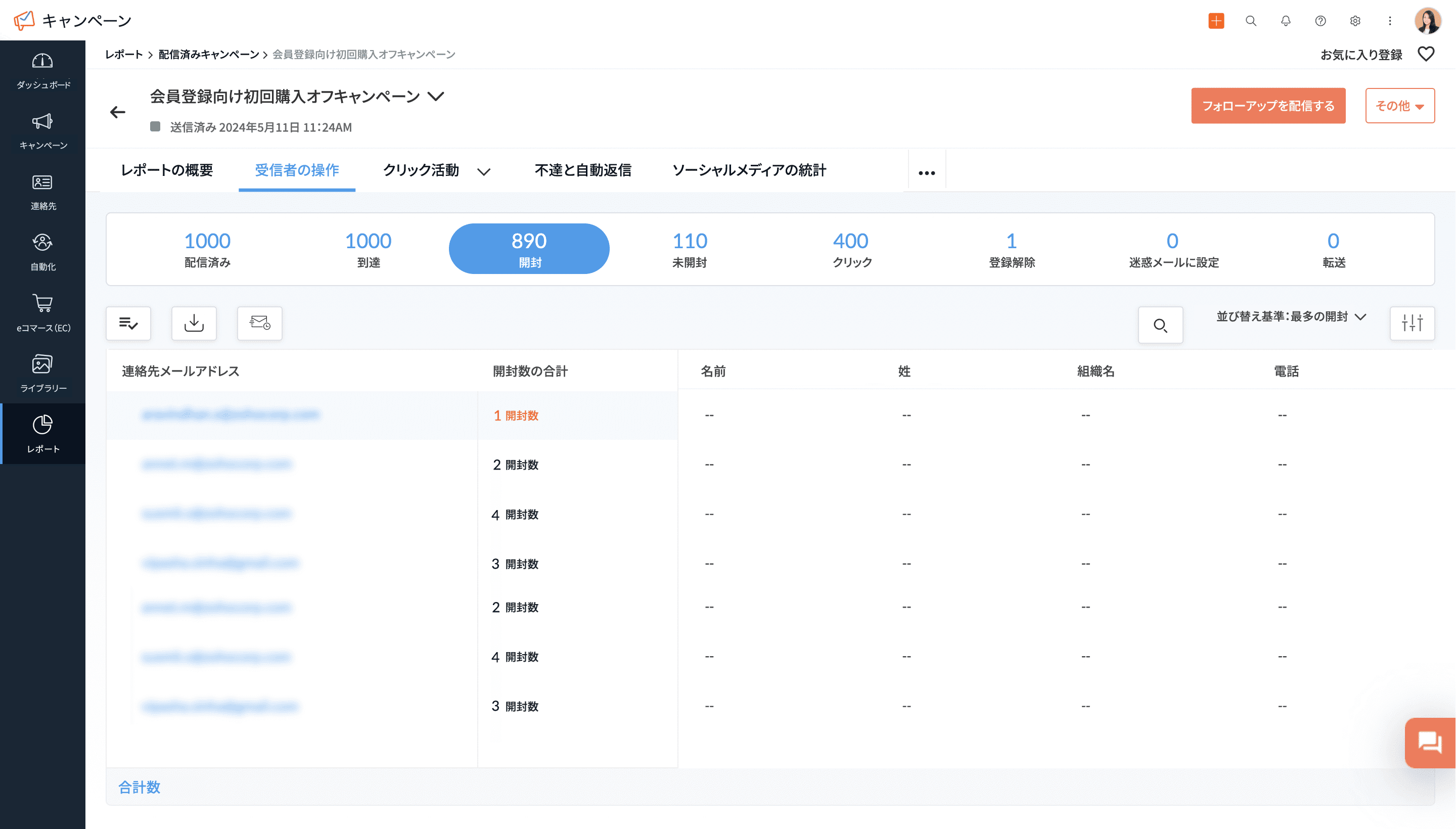 受信者の何人くらいがメールを開封したのか、どのような人が開封したのか、さらには最もよくクリックされたリンクなどを確認できます。