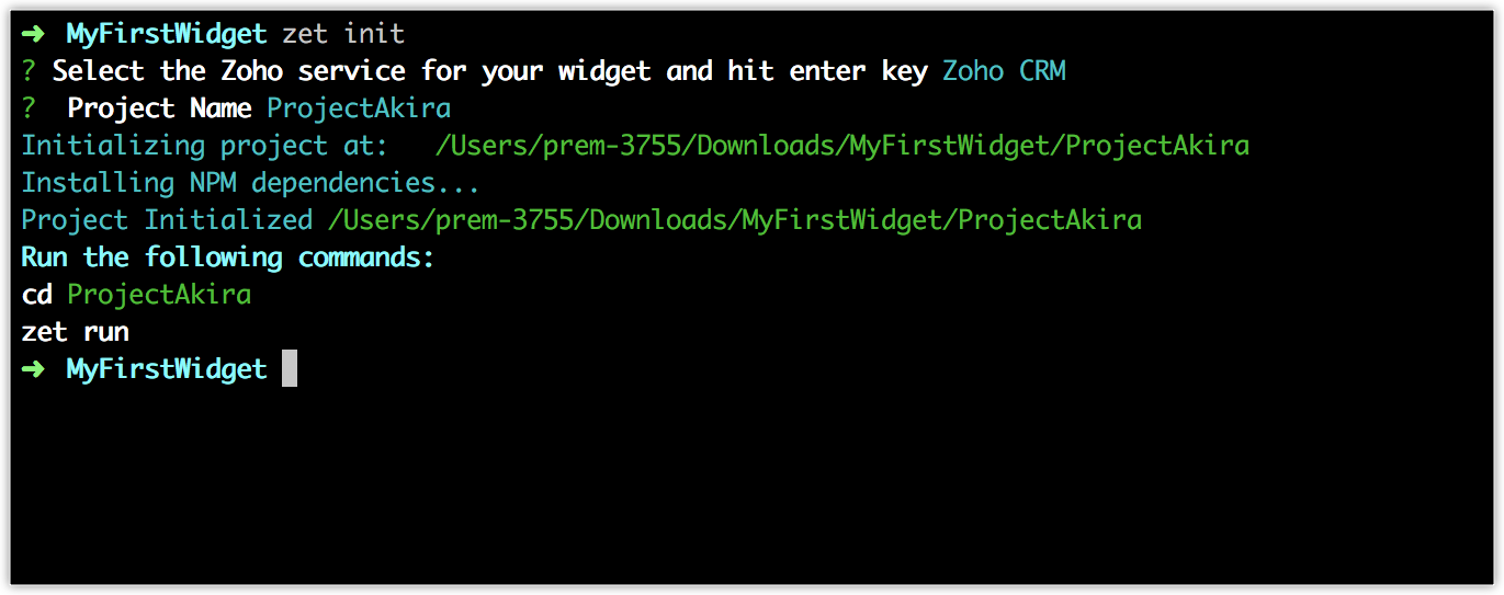 Zoho CLIをインストールしたら、独自のウィジェットを作成できます。
