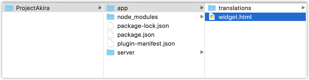 - ウィジェットのHTMLファイルは、デフォルトで「widget.html」という名前のアプリフォルダーにあります。