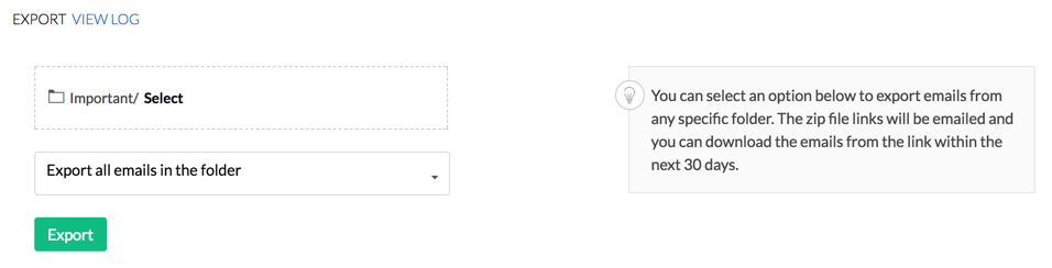 また、Zoho MailアカウントからメールをEML形式でエクスポートして、ローカルに、またはバックアップとして保存できます。メールのフォルダー全体をエクスポートすることも、特定の期間または最近の数か月(最長過去1年間)のメールをエクスポートすることも可能です。
