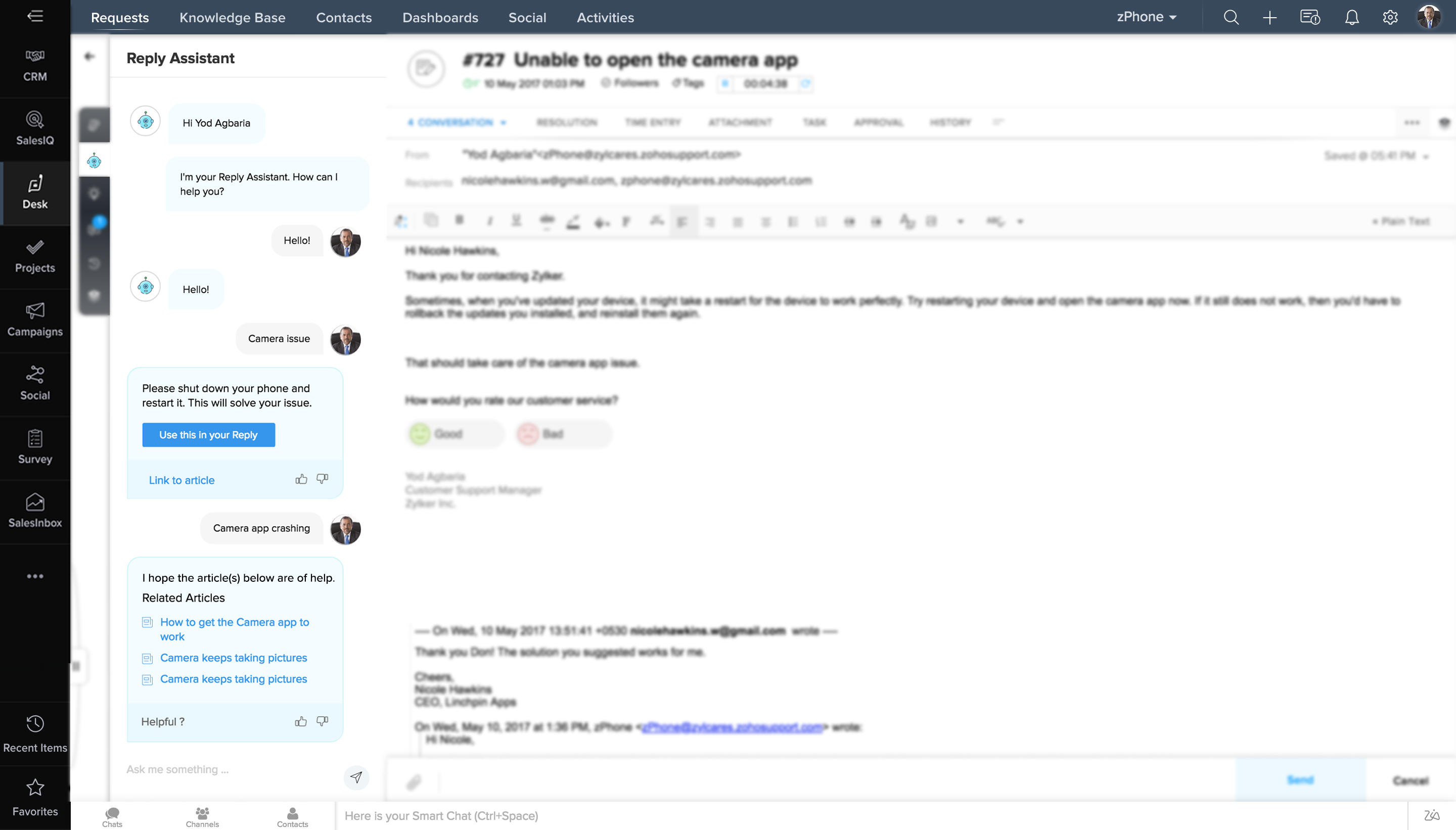 Zoho Desk Zia:https://www.zoho.com/desk/zia.html