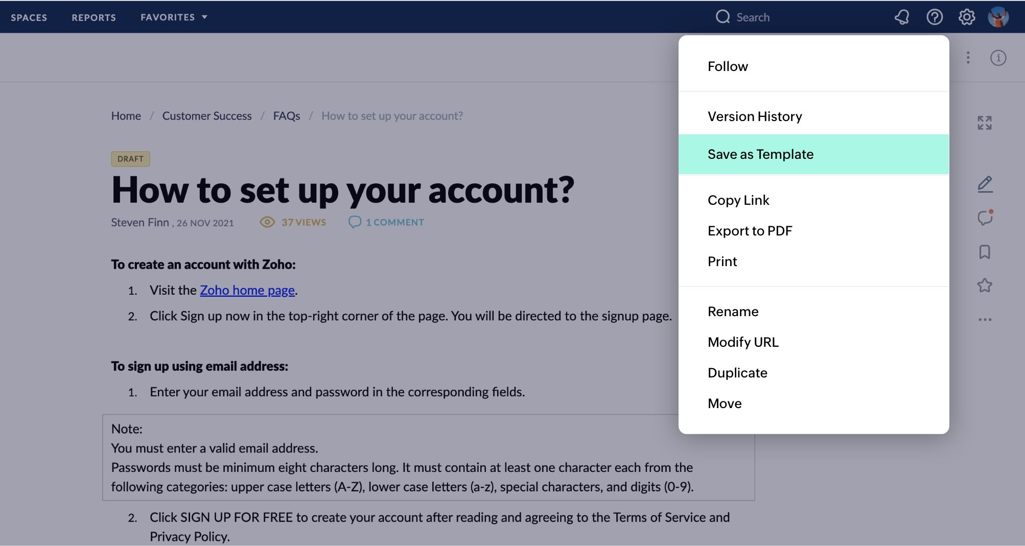 Save existing articles with standard design and style as templates. Reuse these article templates to build new articles.