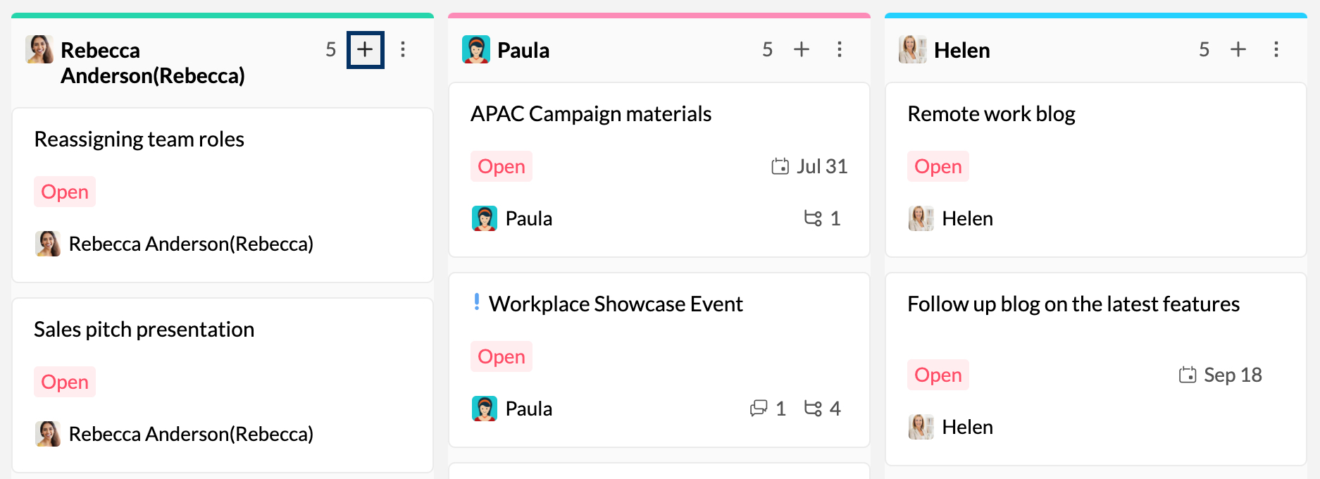When you add a task using this method, the task will automatically take the value of the section you are adding the task from. For example, say you grouped your tasks by Priority. And there are three sections displayed—High, Medium, and Low. If you click the + icon available in the High section, to add a new task, the task will be automatically set to High Priority. It works the same way with other fields like Assignee, Category, and Status among others.