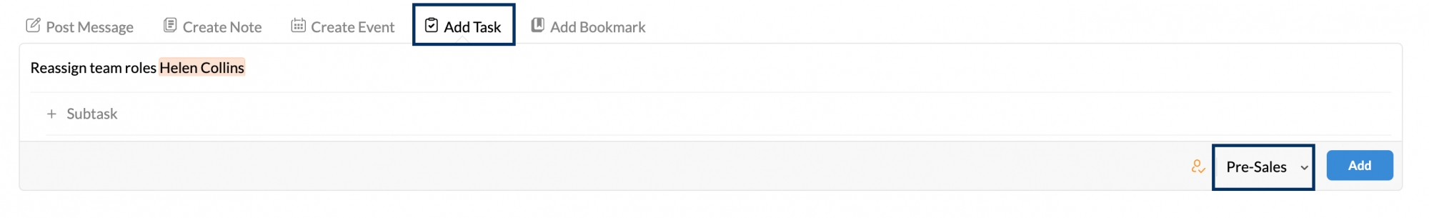 You can add tasks to other Zoho applications—Zoho CRM, Zoho Connect, Zoho People, Zoho Desk and Zoho Projects, right from Tasks' Unified view. Click here to know more.