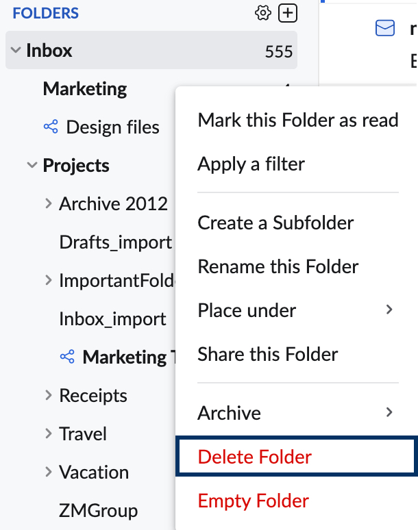 Apart from the Empty folder option, Zoho Mail also provides an Archive feature to archive emails for future reference. Detailed information about the Archive feature is available on this help page.