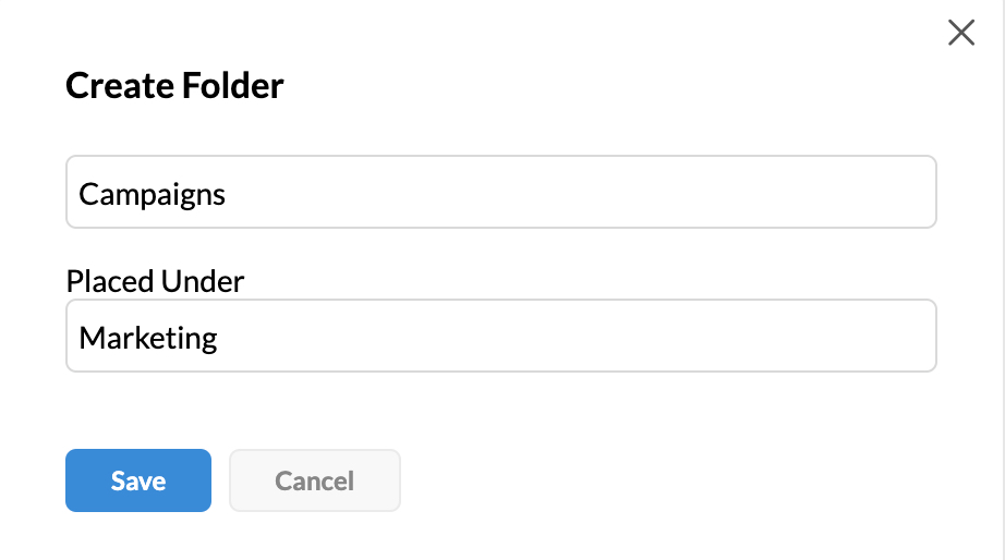 - Enter your preferred placement for the new folder in Placed Under field. By default, there will be '/' showing that the new folder will be a root folder and not a sub-folder.