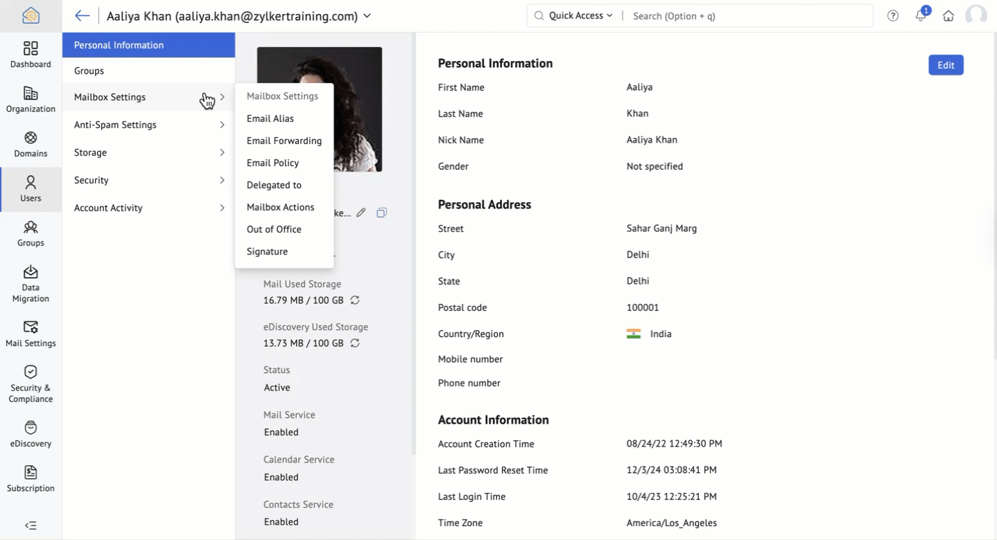 In case you want to create two different email addresses for the same user, you can use the email alias feature of Zoho Mail to easily create additional email addresses.