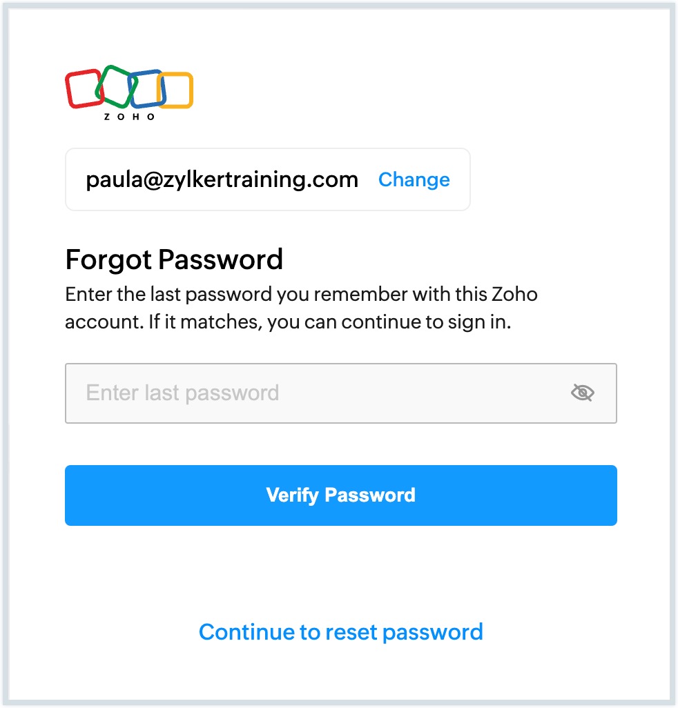 - If you recall your previous password, enter your last password, then select Verify Password and adhere to the on-screen instructions to reset your password.