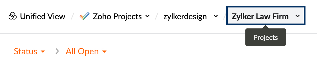 - Click on Zoho Projects icon from the top bar to get an expanded view.