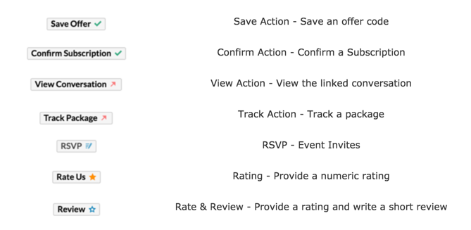 If you're sending a coupon or an offer along with your email, and the user might save the coupon for later use, the Save Action button can be embedded to the listing. This action can be used only once from the email listing.