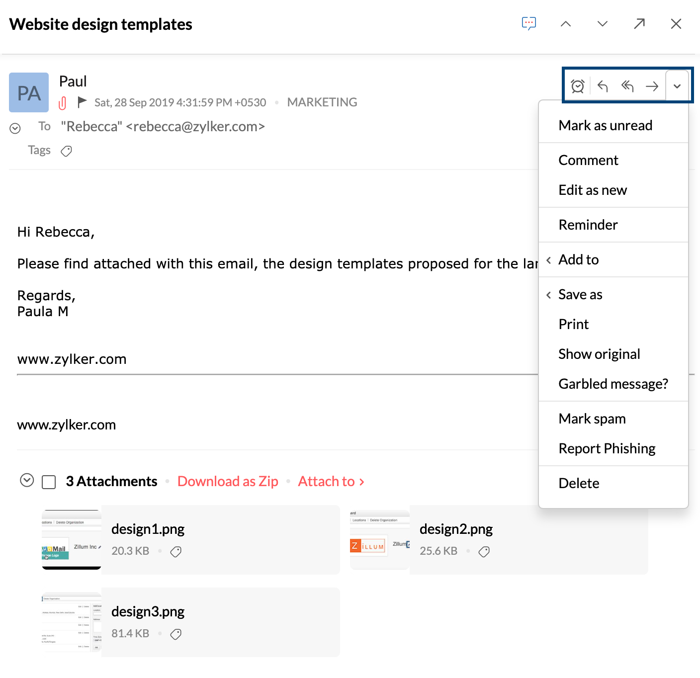 When you receive emails, to sort them in an organized manner, different actions may be needed depending on the emails you receive. You may want to move the email to a folder, apply a label or add a flag, filters emails and so on. Zoho Mail provides multitude of options to achieve a clean, hassle-free inbox.