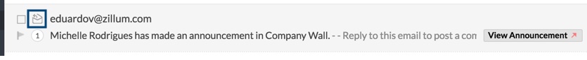 The email status indicator icon is displayed when you hover over the emails in the email listing. This icon shows the Read/Unread status of the email and whether the email has been replied to or forwarded.