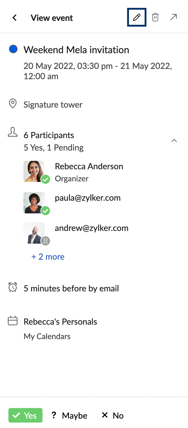 - Navigate to the event you want to edit from the Day, Week or Month view and click on the event.