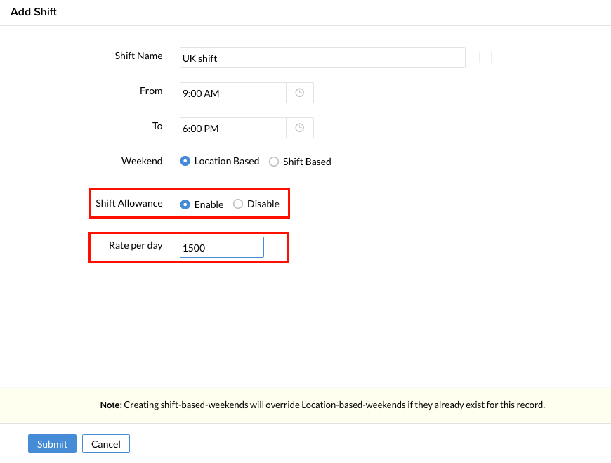 - Under 'Shift Allowance', check the 'Enable' button