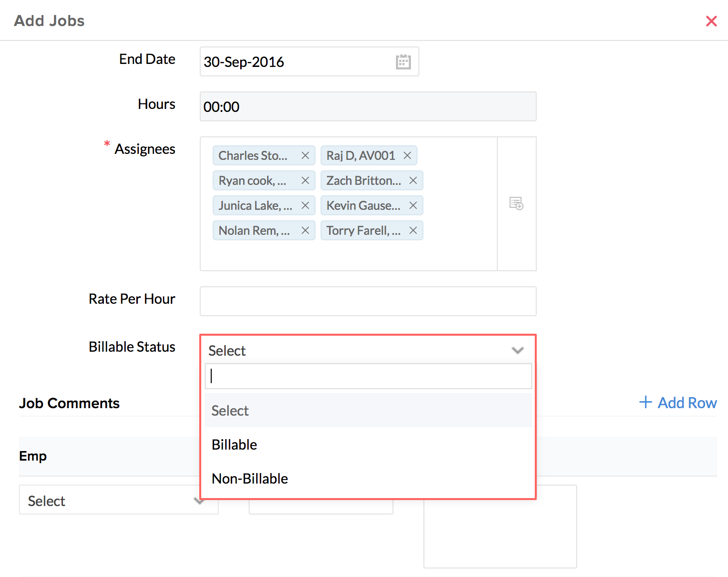 - Under Assignees, select the assignees for the particular job
