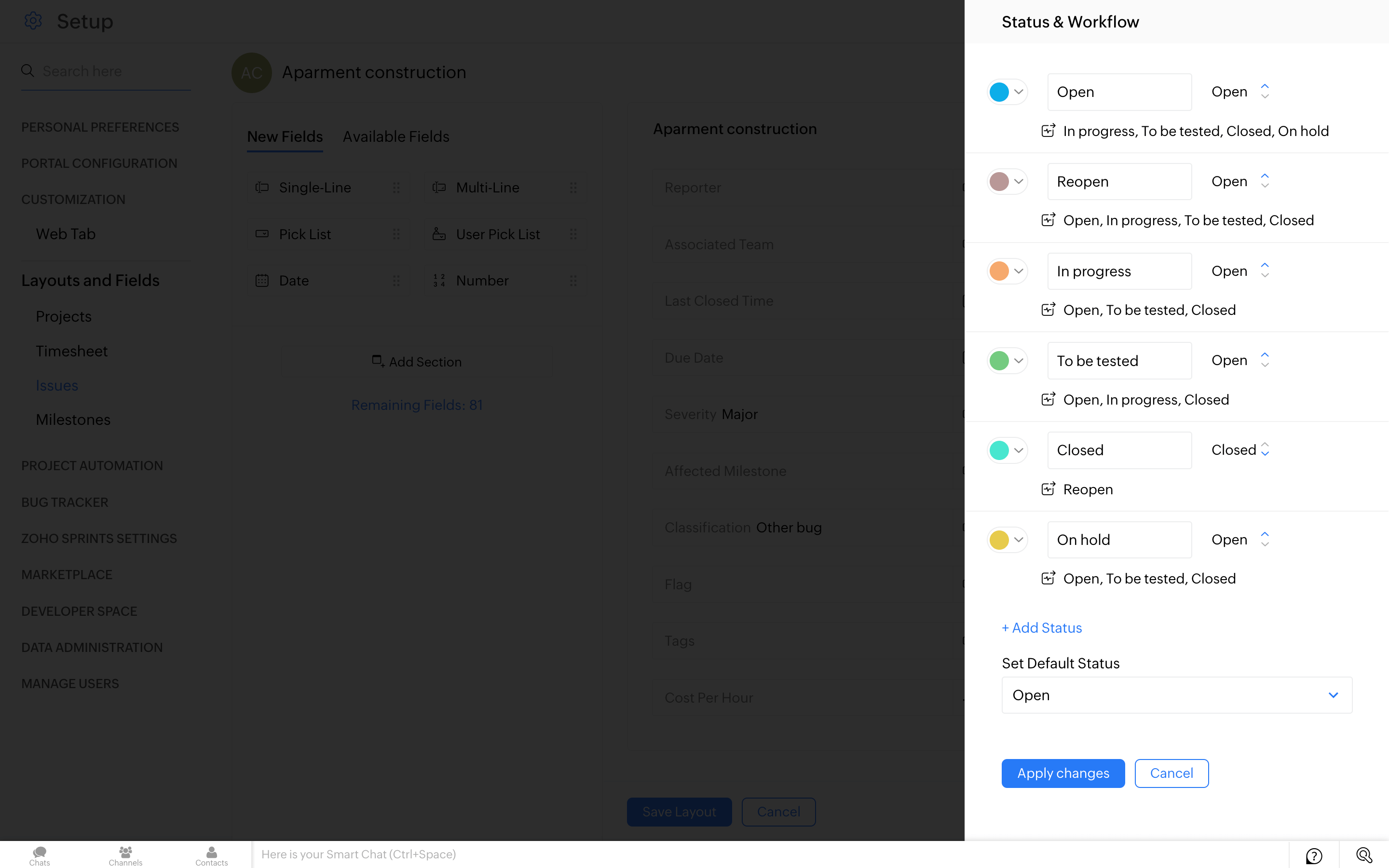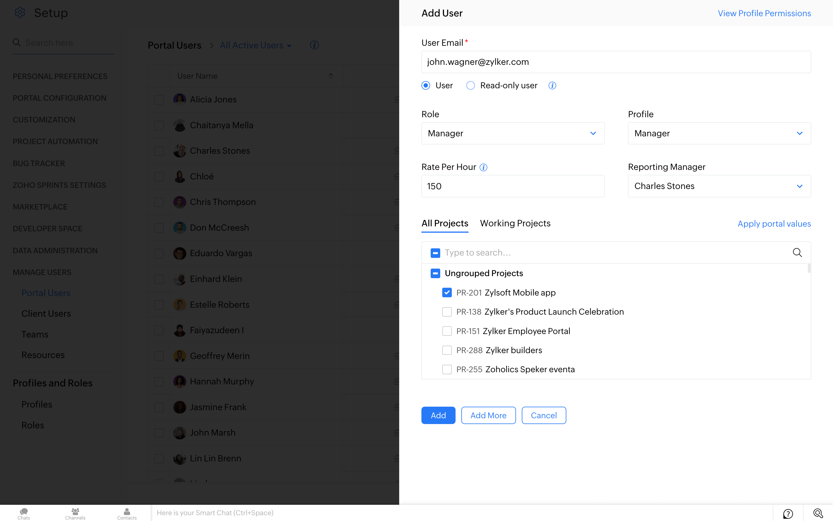 Dê a cada equipe de desenvolvimento seu próprio espaço para criar módulos, atribuir funções de usuário e definir privilégios. Com o Zoho BugTracker, os administradores estão no controle total e podem obter a visibilidade refinada de um projeto.