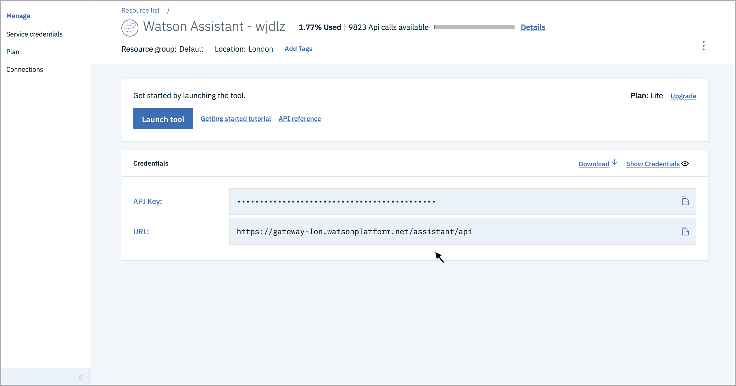 - Then click Launch tool. If you're prompted to log in to the tool, provide your IBM Cloud credentials. You'll be landing on the home page of the IBM Watson Assistant.