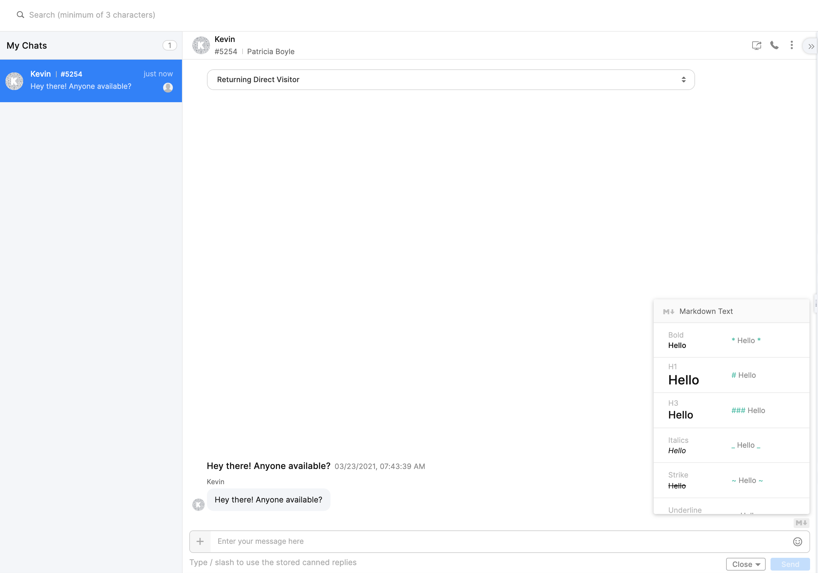 - SalesIQ supports markdown, which is used to format the text in the operator's chat window. These markdowns can be viewed by clicking on the M icon with a downward arrow at the bottom right corner of the operator chat window. You can use typographical emphasis like bold, italics, increase the font size, quote a text, etc.