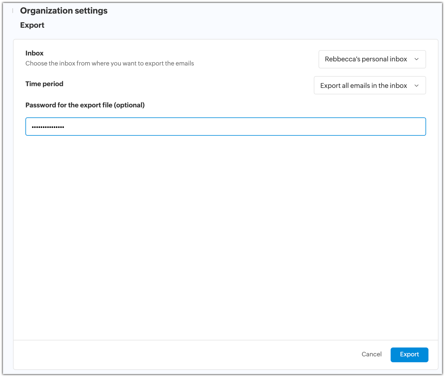 Your export will now be scheduled, and once it's completed you can download the exported emails as a ZIP of EML files.
