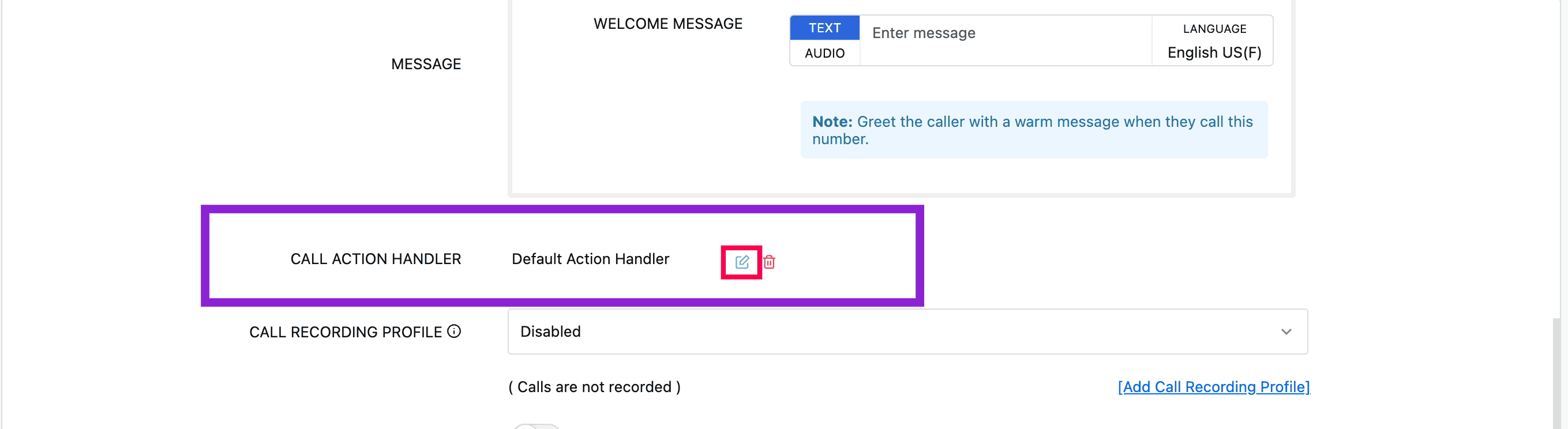 Click Save, once the required call action handler is configured.