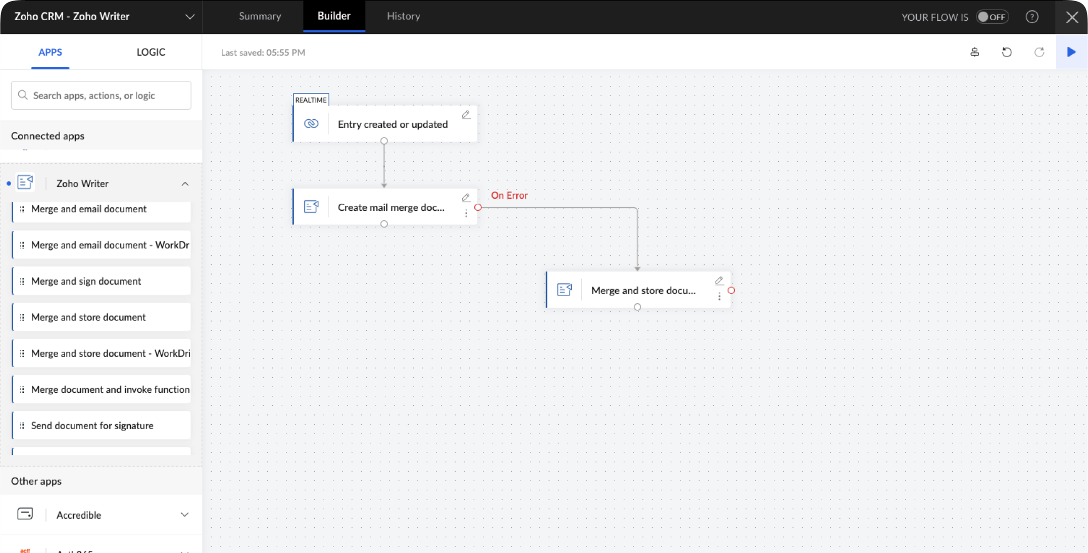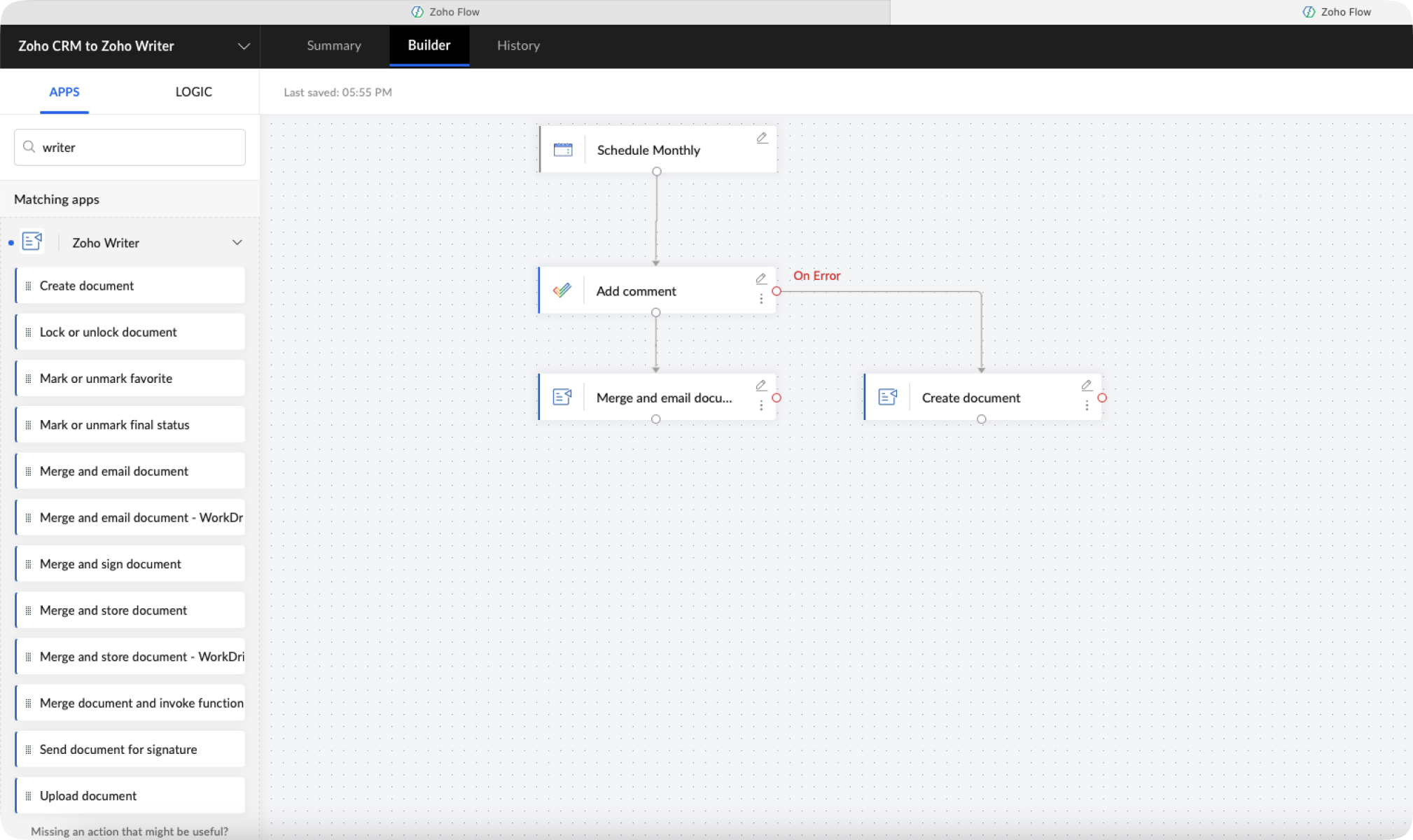 Generate and share documents across apps with Zoho Writer and Zoho Flow