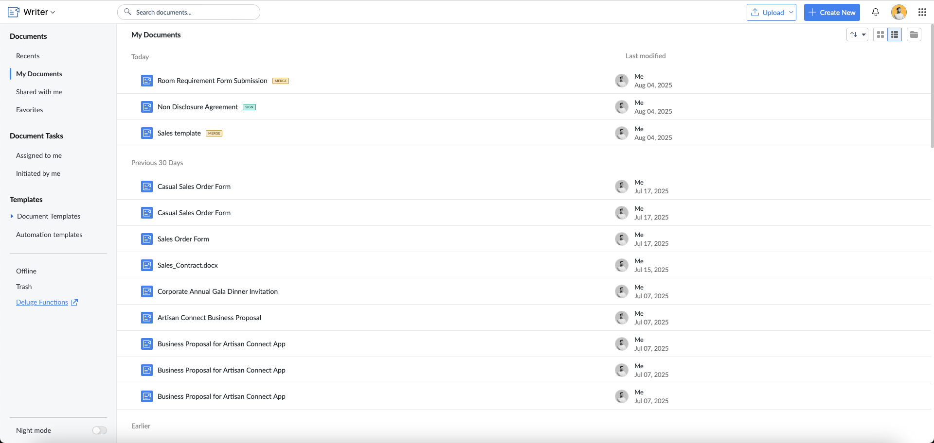 - To use this API, an OAuth token should be generated with the following scopes ZohoWriter.documentEditor.ALL, ZohoWriter.merge.ALL and ZohoSign.documents.ALL