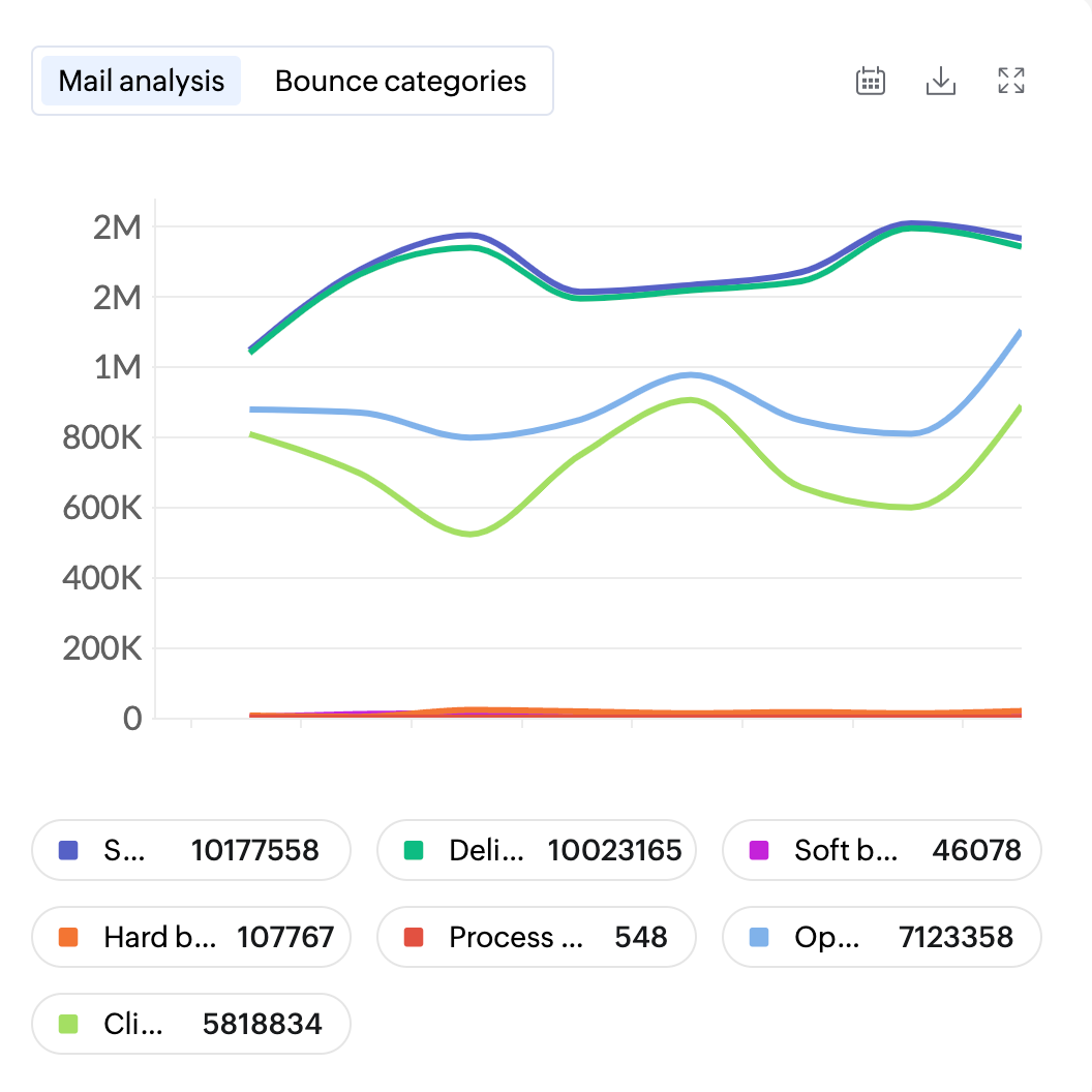 - Soft Bounces - Number of emails that did not deliver due to temporary reasons like recipient server being down or the recipient's inbox being full.