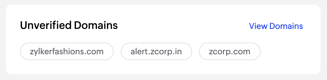 This section lists all the unverified domains added to your ZeptoMail account.
