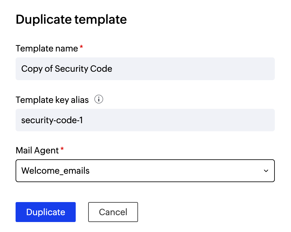 - Click Duplicate and a copy of the template will be created in the respective Agent.